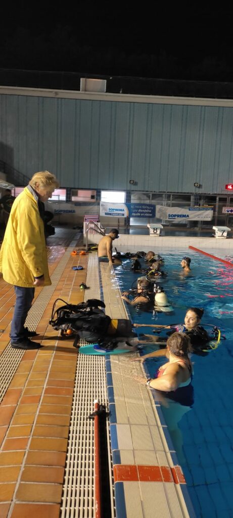 La météo n’était pas des plus clémentes, mais malgré tout une douzaine de personnes informées de la soirée par les articles dans les journaux et la journée des Associations, a pu profiter des nombreux encadrants bénévoles présents pour gouter aux plaisirs des activités subaquatiques.